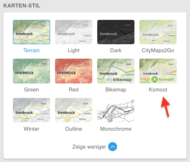 Im Reiter „Karte designen“ des Printmaps-Editors können Sie zudem die Komoot-Kartografie als Basiskarte für ihr Druckprojekt einstellen: