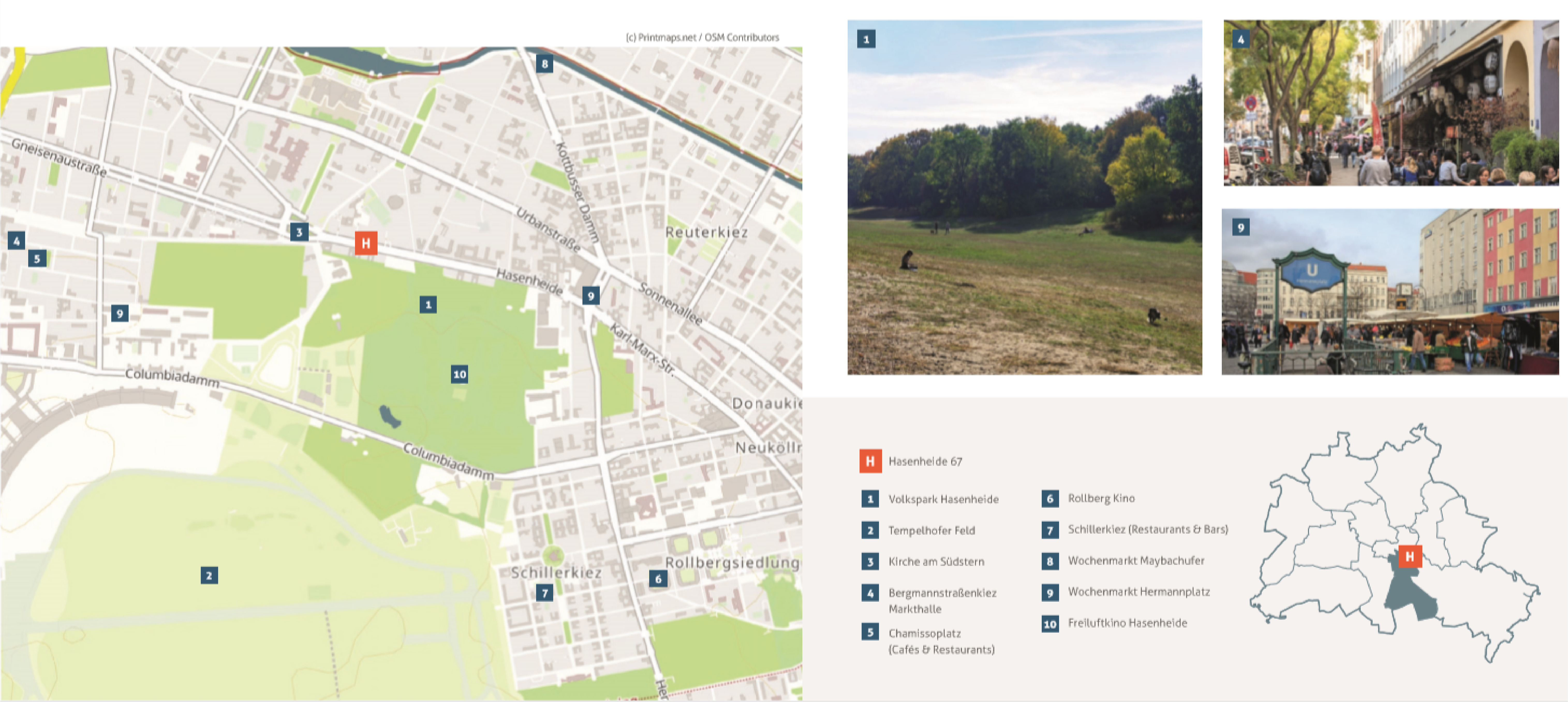 With Printmaps, you can download high-resolution maps of any location at 300 dpi and incorporate essential points of interest within the neighborhoods. This guarantees that the quality of the maps remains uncompromised when utilized in print for your real estate flyers or real estate exposés.